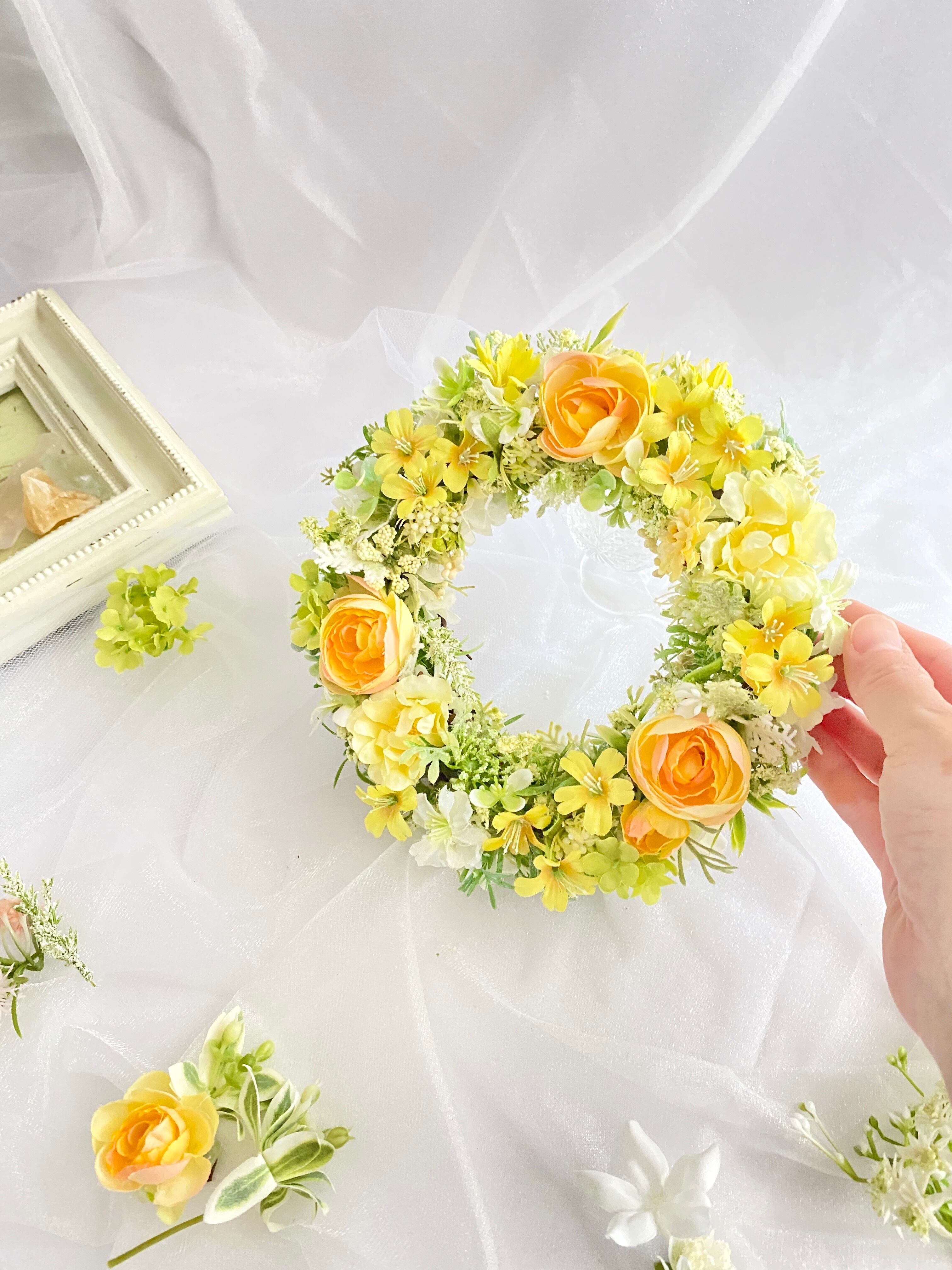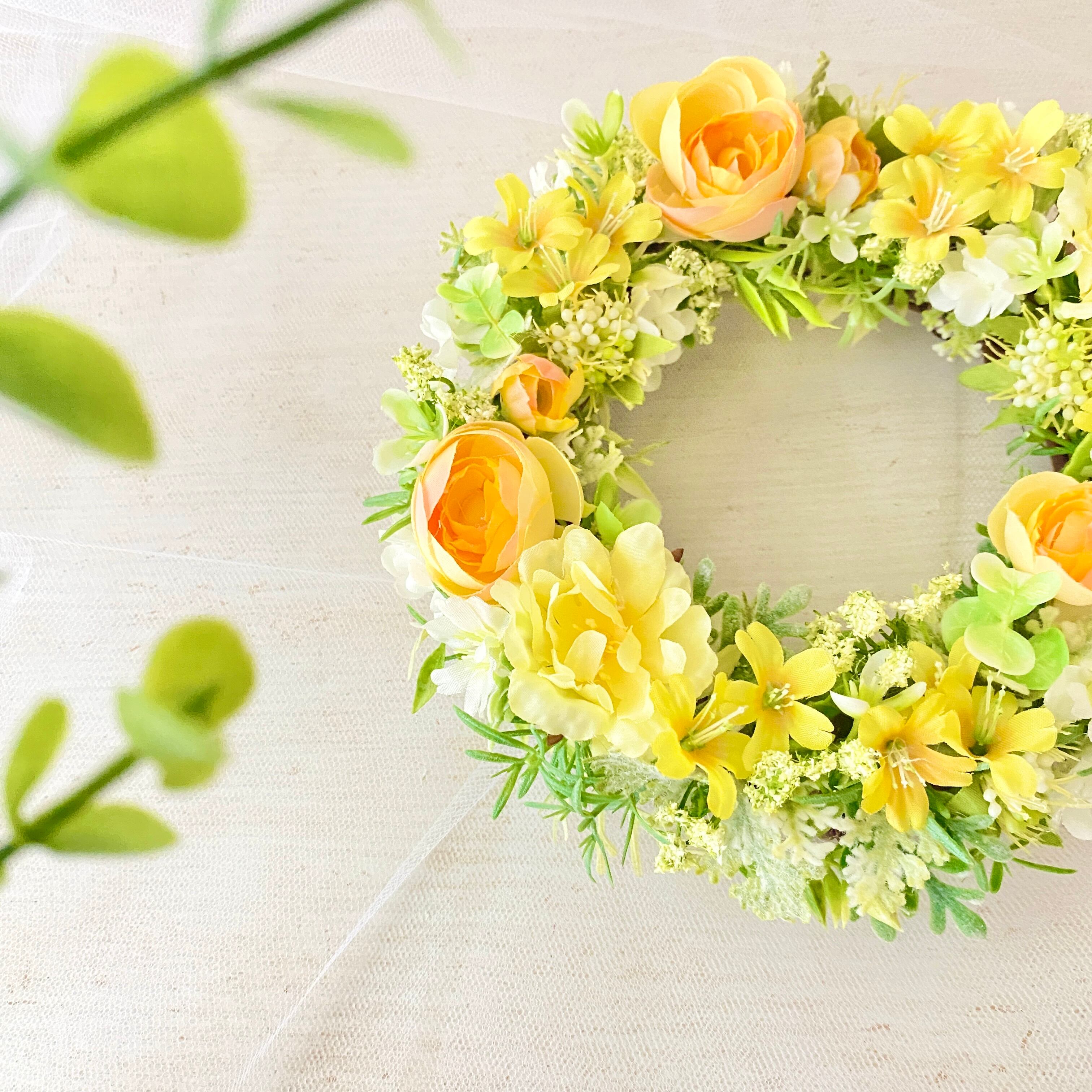■生花やドライフラワーとは違いますので安心して玄関に飾れます。直射日光にあたると色褪せや劣化の原因となりまのでご注意ください。